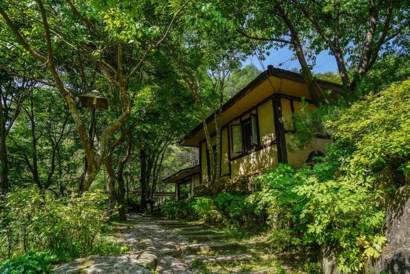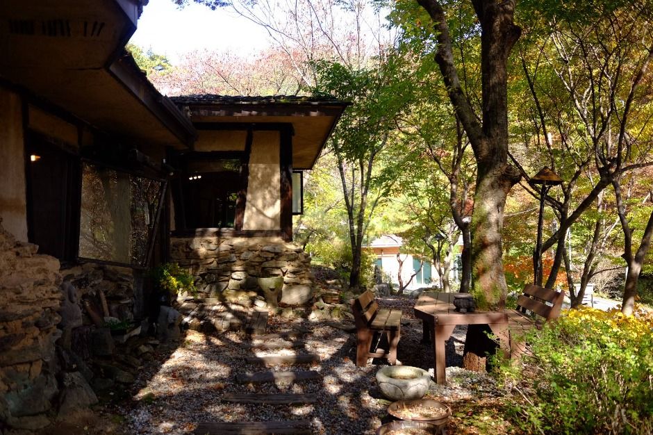 치악산 상원사로 오르는 길, 매표소를 지나 작은 개울을 건너면 길 이름처럼 소롯 길이 나무 사이로 수줍게 모습을 드러낸다. 황토와 돌로 축대를 쌓고 벽을 올린 뒤 너와로 지붕을 얹은 강원도 산골의 너와집 풍경 그대로다. 카페 겸 식당으로 이용되지만 주로 음식을 찾는 손님들이 많다.