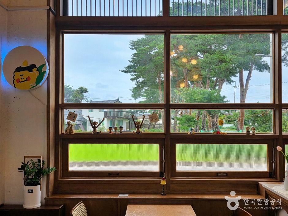 또한 카페 입구부터 이어지는 감성 가득한 공간으로 푸릇한 식물 사이로 난 나무 출입구는 인생샷 명소가 되고 우드톤으로 꾸며진 내부와 테라스는 이국적 정취를 자아낸다. 강문해변 근처에 위치해 있어 포장으로 즐기기에 좋다.