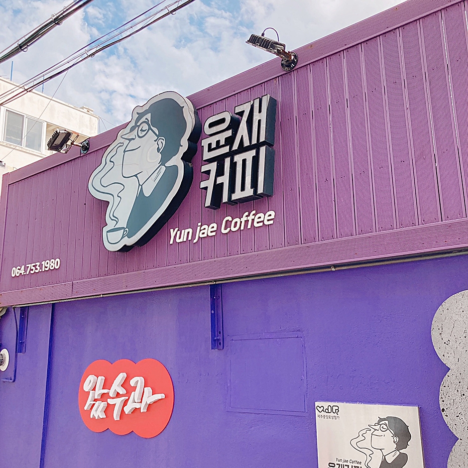 윤재커피는 제주시 동문시장 근처에 있다. 제주 원도심의 구옥을 개조하였고 아기자기한 소품과 함께 작은 정원이 있는 카페이다. 제주산 식재료를 이용해 식음료를 만들고 엄마표 기름떡의 경우 제주 로컬음식인 기름떡을 모티브로 제주산 쑥, 당근, 플레인 세 가지 맛에 전복 조림과 블루베리 잼, 애플망고 잼을 함께 제공한다. 이 밖에 아인슈페너, 흑임자 라테 등도 인기 메뉴이다. 주변 여행지로 제주 원도심, 제주목관아 등이 있다.