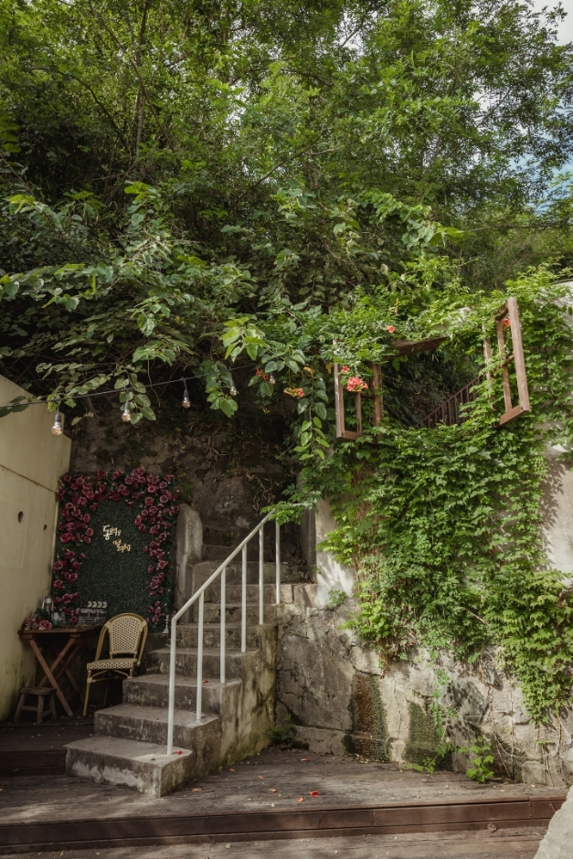 구룡포 근대문화역사 거리 내에 자리한 카페로, 드라마 <동백꽃 필 무렵>의 주요 배경이었던 ‘까멜리아’ 옆에 자리한다. 일본식 가옥의 빈티지한 분위기를 살린 까멜리아와 달리 이곳은 외관은 적산가옥의 형태를 띠지만 내부는 전혀 다른 풍경으로 눈길을 사로잡는다. 발리의 어느 리조트를 연상시키는 이국적인 인테리어가 마치 먼 나라로 여행을 떠나온 것처럼 기분 좋은 설렘을 느끼게 한다. 카페는 1층과 2층으로 나뉘는데, 1층에는 온통 초록빛 나무와 색색깔 꽃을 피운 화분들로 채워져 생기가 넘친다. 2층에는 야외 테라스도 마련돼 햇살 좋은 날 여유롭게 차 한 잔을 즐기기 좋다. 드라마 주인공의 이름을 딴 ‘동백이 빙수’도 구룡포만의 감성을 느끼기 좋은 메뉴다.