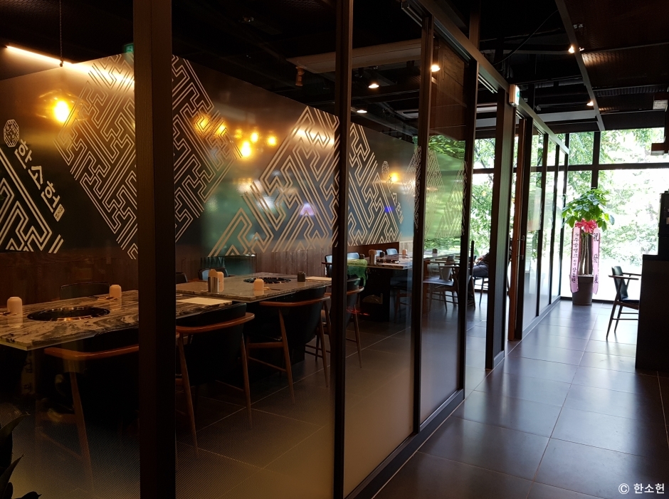 경기도 성남시 정자역 3번 출구 앞에 있는 한우 전문점이다. 젤존타워 2층 가운데에 있다. 실내에 대형 창이 있어 탁 트인 분위기에서 식사를 즐길 수 있다. 한소헌은 1++ 한우만을 선별하여 숙성 후 제공한다. 특이하게 갈비 고기를 뼈에 말지 않고, 갈비뼈를 길이대로 썰어 제공한다. 탄천, 분당주택공원, 금곡공원, 정자공원 등이 가까이에 있어 식사 후 걷기 좋다.
