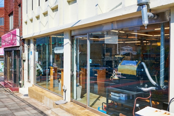 롤링브루잉 카페는 제주 공항 근처, 동문시장 근처에 위치해 있어 제주여행의 시작과 마무리로 좋은 곳이다. 또한 스페셜티 원두만을 사용하여 각 원두의 특성을 살리기 위해 직접 로스팅을 한다. 매장 2층은 전시공간으로 활용하여 커피를 마시며 작은 전사 작품을 구경하는 재미도 느낄 수 있다. 대표 메뉴는 에스프레소이고 그 외에 콜드브루, 라떼, 아이스티, 아이스크림등의 메뉴가 준비되어 있다. 힙한 느낌의 매장 내부 안에는 고양이가 있는데 이 가게의 마스코트이다. 커피 마니아 이거나, 커피에 집중할 수 있는 카페를 찾는다면 롤링브루잉을 추천한다.