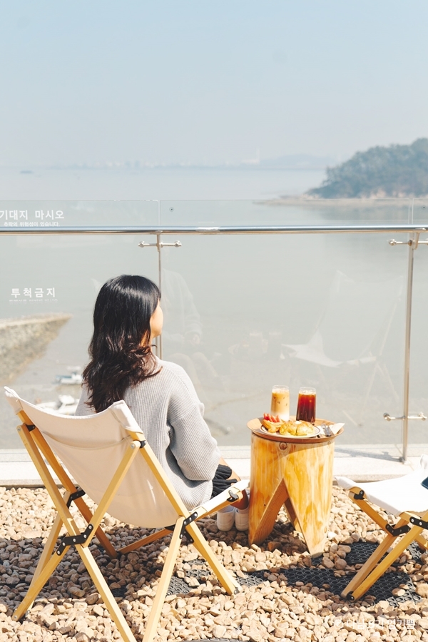 바다앞테라스는 영종도의 바다 풍경을 감상할 수 있는 카페로, 탁 트인 전망과 함께 편안한 시간을 보내기 좋다. 바다 바로 앞에 자리하고 있어 통유리 너머 탁 트인 전망을 감상할 수 있다. 특히 휴양지 리조트를 연상시키는 이국적인 분위기의 루프탑에선 따스한 햇살과 상쾌한 바다 향기까지 마음껏 즐길 수 있다. 아메리카노, 카페라떼 등 기본 커피 메뉴가 맛있으며, 시즌에 따라 파인애플이나 한라봉 같은 과일이 통째로 올라가는 생과일주스도 인기메뉴다.