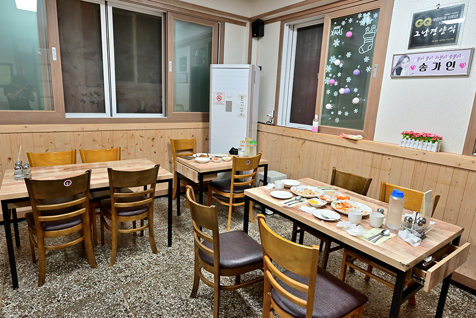 식당 이름이 간결하게 그냥이지만 맛은 이름과 달리 특별하다. 과거 특별한 날에만 갈 수 있던 경양식집이라는 높은 음식점 문턱을 낮춘 곳이 바로 이 집이다. 진도 출신은 거의 다 아는 유명 맛집이라고 한다. 주변에 군청과 학교 등이 자리하고 있어 남녀노소 누구에게나 인기가 많았다. 어린아이들은 부모들의 손을 잡고 중고등학생들은 친구들과 함께 방문하던 식당이었다. 현재는 전국 각지에서 찾아오는 방문객들로 문전성시를 이루고 있다. 추억의 맛이 그리울 때 가족과 함께 방문하면 만족할 것이다.