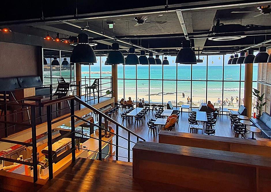머문은 제주 월정리해수욕장에 있다. 2층에 있으며 전면 통창 유리를 통해 월정리 바다를 볼 수 있다. 층고 또한 높아 개방감이 좋다. 바람이 불고 만조일 때는 마치 바다에 앉아 있는 듯한 느낌이 드는 카페로 다양한 좌석이 있고 복층형 구조로 되어 있다. 내부에도 조명이 많아 외부와 조도 차이가 크게 나지 않아 사진을 찍을 때 안과 밖이 비교적 모두 선명하게 나온다. 주변 여행지로 코난 해수욕장, 김녕미로공원 등이 있다.