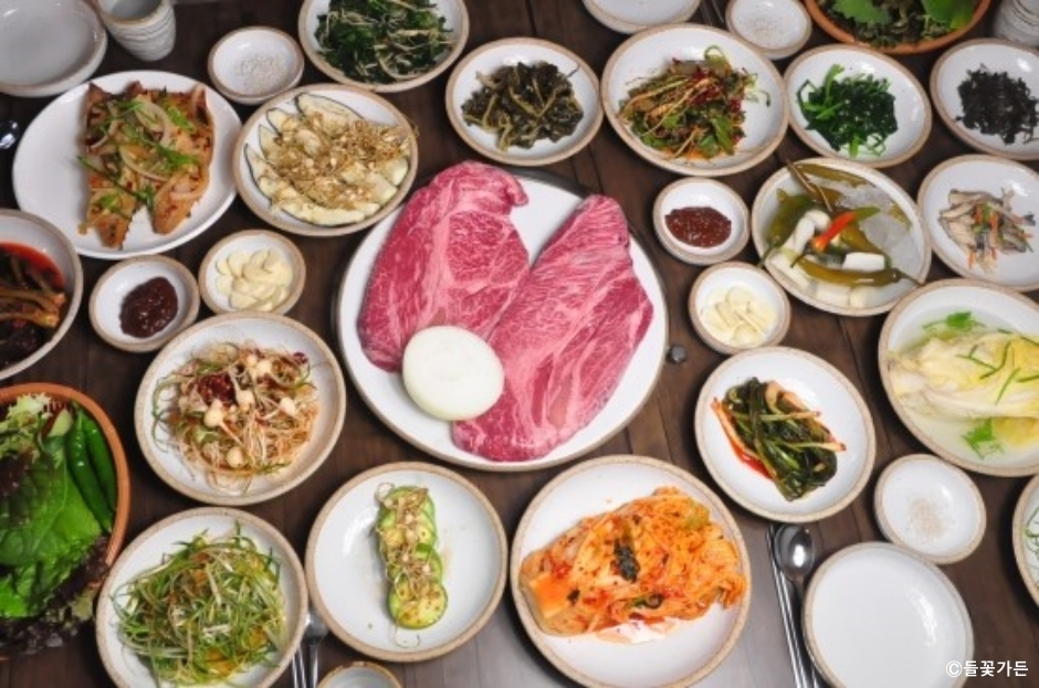 들꽃가든은 강원도 원주시 오크밸리 앞에 있는 식당이다. 간편 식사, 고기 식사, 계절 식사로 구분해서 메뉴를 관리하고 있다. 간편 식사는 들깨된장배춧국, 암소소머리국밥과 같은 단품 음식이고, 고기 식사는 제주흑돼지, 한우등심과 같은 고기 메뉴이다. 한우등심은 예약해야 먹을 수 있다. 계절 식사는 강원도 토속 음식인 잣막국수, 도치국이다. 새벽 5시 30분부터 영업하므로 새벽 식사, 아침 식사 손님도 많다. 픽업 서비스를 제공하기 때문에 근처 숙소에 머물고 있다면 운전 걱정 없이 술을 마실 수도 있다. 주차는 매장 앞에 넓은 전용 주차장이 있어 이용이 편리하다.