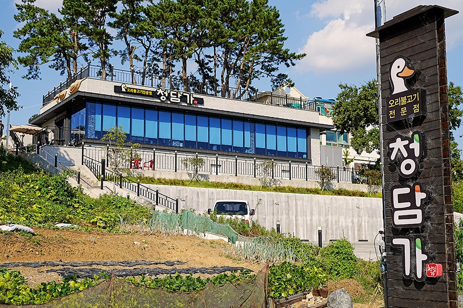 통영 청담가는 남해안 대로를 따라가다 거제대교를 건너기 전에 있는 오리 불고기 전문점이다. 넓고 깨끗한 매장에 천장까지 이어진 통유리 바깥으로 통영과 거제를 잇는 신거제대교가 보여 근사한 뷰와 함께 식사를 즐길 수 있다. 주차장도 넓은 편이라 친구나 가족 모임을 하는 사람도 많다. 국내산 친환경 무항생제 유황 오리만을 사용하며 엄격히 선별한 식재료만을 사용하기 때문에 더욱 신선하고 부드러운 식감의 오리를 맛볼 수 있다. 메뉴는 간장 오리 불고기와 고추장 오리 불고기로 2가지뿐이다. 커플 2인상 또는 가족 메뉴 중 인원에 따라 선택하면 된다. 달궈진 철판에 부추와 오리 불고기를 구운 후 특제소스와 양파절임을 쌈에 싸 먹으면 된다. 주변에는 디피랑과 통영 케이블카, 스카이라인 루지 등 인기 여행지가 많아 함께 여행하기에 좋다.