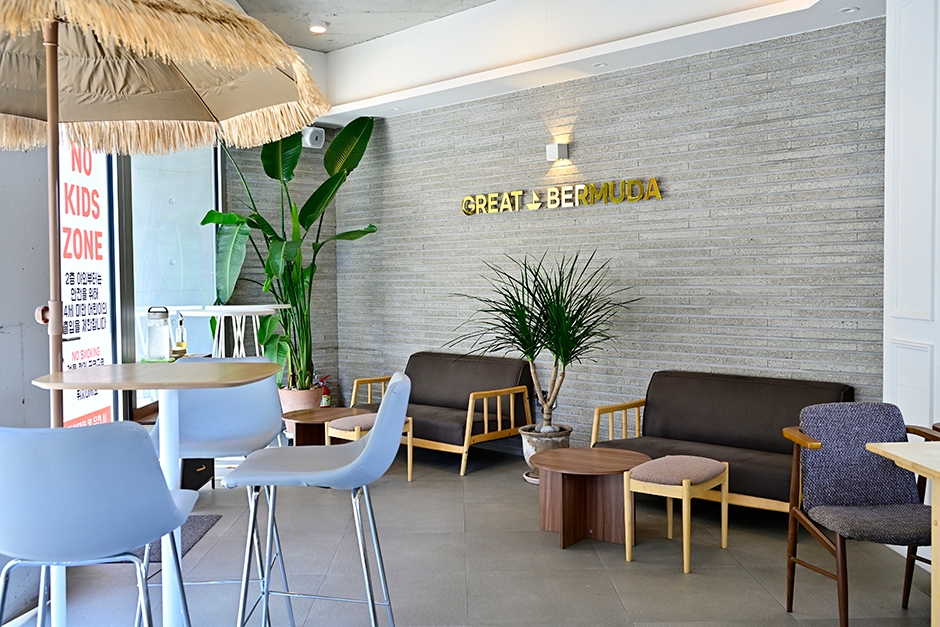 마산합포구 진전면 창포마을에 있는 카페 그레이트버뮤다는 한국의 아름다운 길 100선 중의 하나인 77번 국도에 있다. 카페 입구로 들어가면 건물 중앙 부분이 삼각형으로 뚫려 있고 그 중간에 돌과 풀 등이 있어 자연스레 버뮤다 삼각지대를 연상케 한다. 야외에는 야자나무가 있고 파라솔이 있는 테이블도 갖추고 있다. 크로플 맛집으로 이름난 이곳의 인기 메뉴는 재료 소진 시까지 판매하는 크로플 브런치이다. 커피와 스무디, 에이드 다양한 음료와 함께 아이스크림 크로플, 바질 치즈 크로플, 어니언 치즈 크로플 등 다채로운 크로플을 맛볼 수 있다. 자동차로 10분 거리에 광암해수욕장과 해안산책로가 있어 연계 관광이 수월하다.