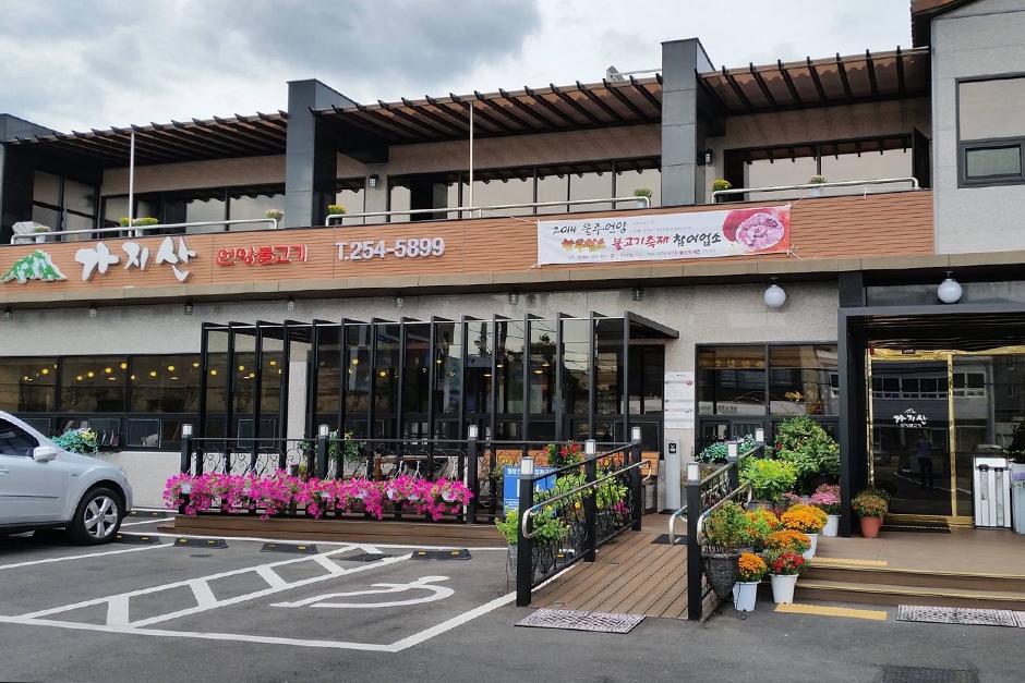언양불고기 거리에 있는 가지산언양불고기는 언양 지역의 특색을 살린 불고기 전문점으로, 숯불에 구운 불고기와 신선한 육회가 인기 메뉴이다. 모듬생고기부터 안창살, 꽃살까지 다양한 고기 종류를 즐길 수 있으며, 된장찌개와 비빔냉면 등 식사 메뉴도 풍부하다. 깔끔한 외관과 고급스러운 실내 분위기에 넓은 주차장이 마련되어 있다.