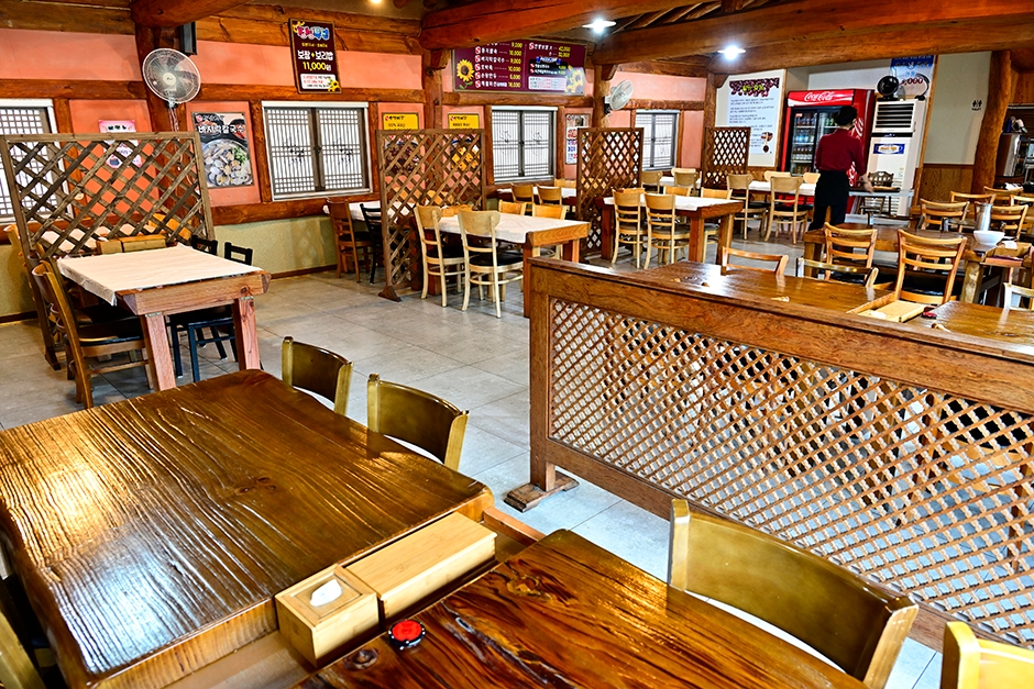 양산 평산 초등학교 근처에 있는 산맞이골은 한식 전문점이다. 외관은 멋스러운 한옥이며 아늑한 분위기의 실내는 입식, 좌식 테이블, 개별 룸으로 이루어져 가족 모임에 적합하다. 보쌈 맛집으로 알려진 산맞이골은 팥죽, 칼국수, 호박죽, 만두, 파전 등 여러 종류의 메뉴가 있으며 특히 점심에만 판매하는 보쌈, 보리밥 점심 특선이 가장 인기가 좋다. 보쌈 한 접시와 열무김치, 콩나물무침, 무생채, 버섯볶음, 고사리, 각종 나물 반찬 등이 한 상 가득 나와 보리밥에 비벼 먹는데 된장찌개도 함께 나오는 구성으로 가성비가 좋아 점심시간에는 사람들로 꽉 찬다. 물놀이와 캠핑하기 좋은 양산 무지개 폭포도 근처에 있어 함께 방문하기 좋다.