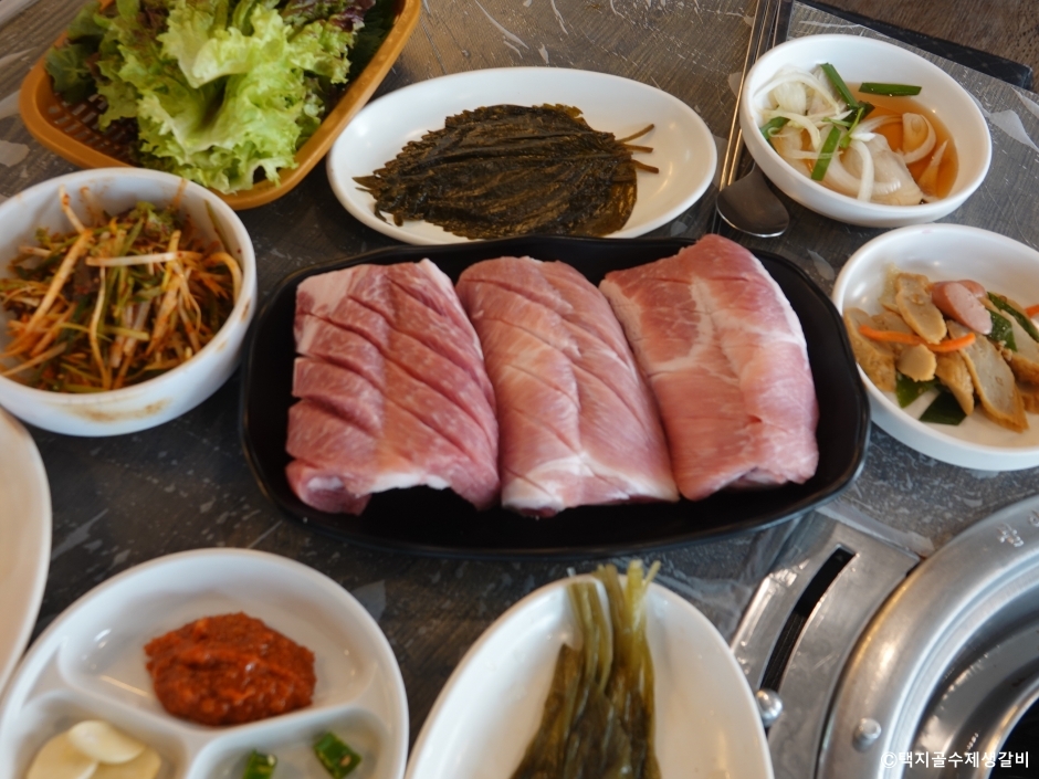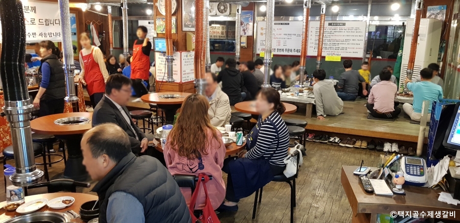 택지골수제생갈비는 강릉시 교동에 있는 고기 전문 식당이다. 한돈을 사용해서 만드는 돼지갈비와 지리산 흑돼지 오겹살, 수제 소갈비가 주 메뉴이다. 고기를 굽는 불은 화력이 좋은 비장탄 숯을 사용하고 있어 기름을 쪽 빼가며 맛있게 구워진다. 해산물 식당이 많은 강릉에서 빠지지 않는 고기 식당이다. 고기를 다 먹은 후에는 시원한 물냉면과 비빔냉면을 즐길 수 있다. 항상 대기가 있는 편이어서 방문할 때는 브레이크 타임이 없는 식당이므로 피크타임을 피하는 것이 좋다. 주차는 매장의 전용 주차장이 있지만 빈자리가 없으면 주변에 공영 주차장이 있어 편하게 이용할 수 있다.