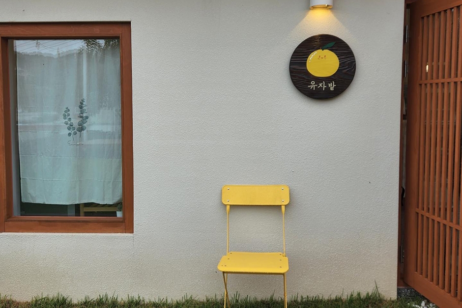 유자밭 카페는 거제시 사등면 작은 어촌 마을에 있다. 카페 마당에는 유자나무와 비치파라솔, 돌담 벽 등이 있어 이색적인 분위기가 난다. 특히 노란색 건물 지붕이 눈길을 끈다. 야외 공간과 실내 공간으로 이루어진 유자밭 카페는 좌식 테이블도 있어 아이와 함께 오기 좋은 곳이다. 카페 내부는 아늑하고 조용한 분위기로 4인 이상 착석이 불가하다. 대표 메뉴는 직접 농사지은 유자로 만든 유자차와 유자에이드, 유자 피나콜라다가 있다. 주차는 근처 방파제 주차장을 이용해야 한다. 야외 좌석은 반려견 동반이 가능하다.