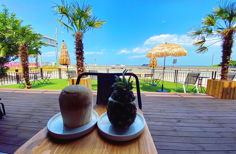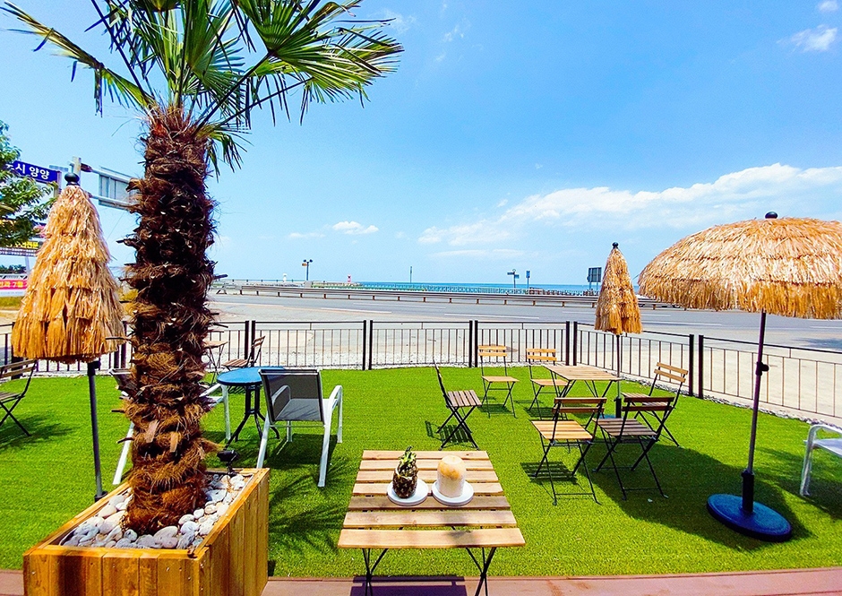양양 물치항 인근에 있는 카페이다. 해변과 가까워 카페 안의 어떤 자리에서도 동해를 조망할 수 있다. 2층 테라스에 오르면 앞으로는 물치항과 해변이, 뒤편으로는 설악산을 병풍처럼 둘러 산과 바다를 둘 다 조망할 수 있다. 카페 옆에서는 지상에서도 서핑 강습이 한창이다. 파도가 좋은 날엔 해변에서 서핑을 즐기는 서퍼들을 쉽게 만날 수 있다.