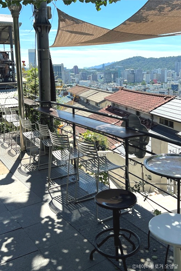 낙산공원 전망대에서 동대문 방향으로 성곽길을 따라 걷다 보면 이화동 하늘정원길이 나오는데, 이곳 초입에 레트로한 지붕의 개뿔이 위치해 있다. 커피와 차는 물론 다양한 주류 메뉴도 갖추고 있어 낮부터 밤까지 즐기기 좋다. 좌석은 1층과 2층, 야외가 있다. 야외 테라스의 테이블은 옛날 은쟁반으로 되어 있어 독특한 느낌이고, 2층은 통유리창으로 되어 있어 개방감이 좋다.