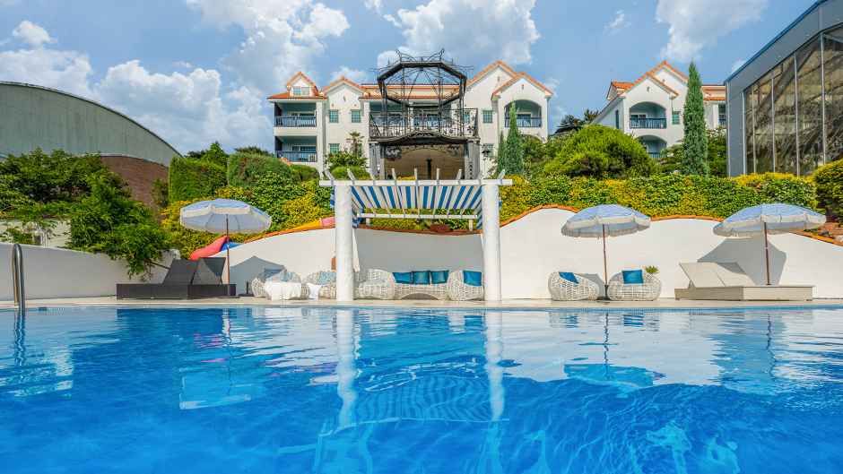 부대시설로는 실내 온수 수영장과 야외 수영장이 있으며 계절과 날씨에 따라 언제든 이용할 수 있는 시설로 운영된다.