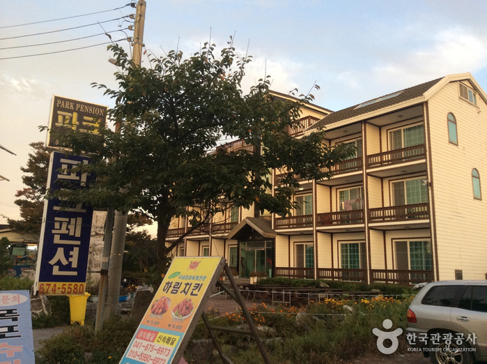 신두리해변의 백사장과 함께 깊고 푸른 바닷물이 태평양의 바닷가를 연상케 하는 때 묻지 않은 자연 신두리에 위치한 파크펜션은 바로 앞쪽에 시원하게 탁 트인 바닷가가 있어 주변경관이 뛰어나다. 야외에는 바베큐장이 준비되어 있으며 예쁜 인공폭포도 준비되어 있다. 펜션에서는 편의를 위해 마트도 함께 운영하고 있으며 물 빠진 해변에서는 갯벌체험도 함께 즐길 수 있다.