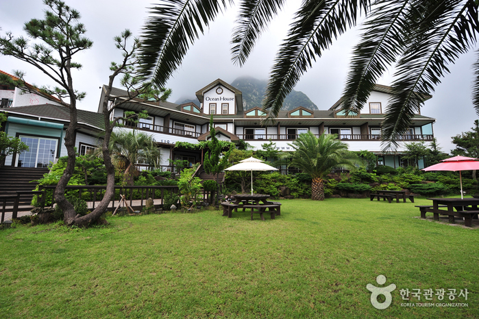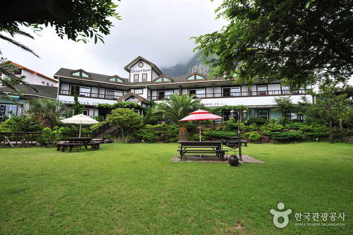 오션하우스는(oceanhouse)는 제주도 서남쪽에 위치한 세련된 네덜란드풍의 전원형 펜션이다. 아름드리나무와 넓은 잔디밭 정원은 주위의 경관과 어울리며 또한 부지를 계단식으로 정리하고 데크를 넓고 길게 만들어 이국적인 정취가 물씬 풍기도록 하였다.오션하우스 바로 뒤에 장엄하게 우뚝 솟은 산방산에는 제주도 영주10경 중의 하나인 산방굴사가 있고 드넓은 태평양이 한눈에 들어오는 용머리해안은 중국 진시황제의 전설을 보는듯하다. 형제섬은 좋은 낚시터로 각광받고 있다.