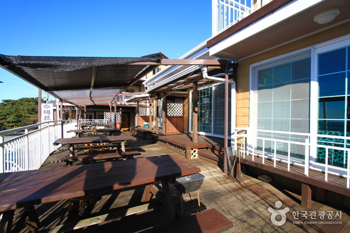 거제도의 최남단 마을 홍포에 오면, 남으로 넓은 남태평양의 바다 위에 가왕도와 매물도가 떠있고, 해가지는 서쪽으로는 멀지 욕지도의 좌사리, 소지도, 연화동 등의 작은 섬들이 낙조에 젖어 황홀한 황금빛을 머금은 모습을 볼 수 있다. 작은 마을 홍포에 1층은 찻집과 식사를 해결할 수 있고, 2~3층은 콘도식 민박의 수미르 펜션이 있다.