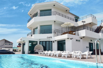 나지막한 언덕 위에 나란히 줄지어 선 하얀 집들이 눈길을 끄는 아름다운 리조트이다. 동해 바다와 눈높이를 맞춘 15m 길이의 수영장에서는 마치 바다에서 물놀이하는 기분을 만끽할 수 있다. 여행에서 빼놓을 없는 바비큐 파티, 푸른 동해 바다를 배경으로 직접 구운 고기 한점이면 여행의 즐거움은 배가 된다. 전 객실에 LG 3D TV 설치되어 있어 편안한 소파나 침대에서 눈이 편안한 입체 영상을 즐길 수 있다.