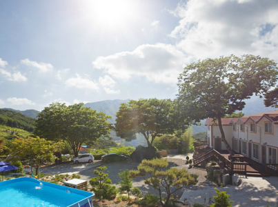 힐링 펜션에 은 서해바다 붉은 낙조와 해송숲과 넓은 백사장이 펼쳐진 한국 철도공사가 선정한 “꼭 가봐야 할 우리나라 낭만 피서지 12” 중 하나인 춘장대해수욕장 근처에 위치하고 있다.