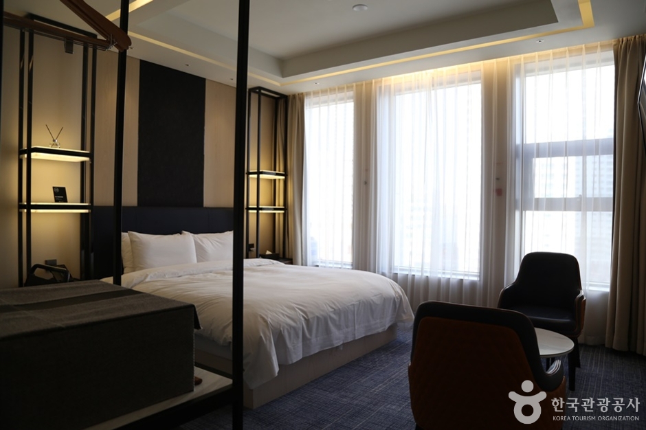 객실 중엔 스타일러가 있어 다음날 깨끗한 옷차림을 유지할 수 있고 62인치 대형 TV가 갖춰져 있다. 1층에 로비가 있고 야외주차장과 지하 1~3층 주차장이 있다. 원할 경우 노트북을 대여할 수 있다. 욕실에는 욕조가 있고 변기가 있는 곳과 샤워실이 분리되어 있다. 새로 단장한 호텔로 호캉스를 즐기기 좋다.