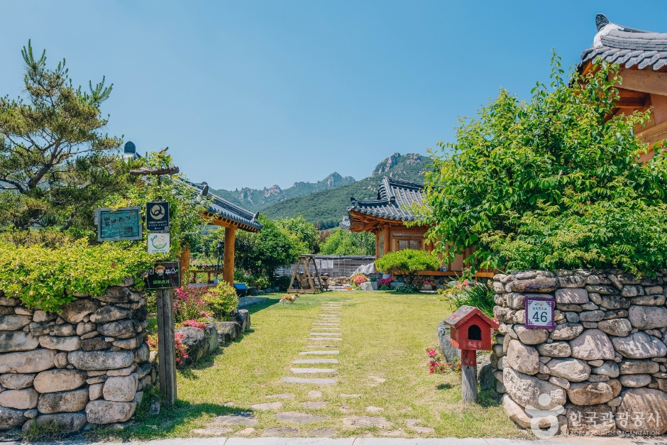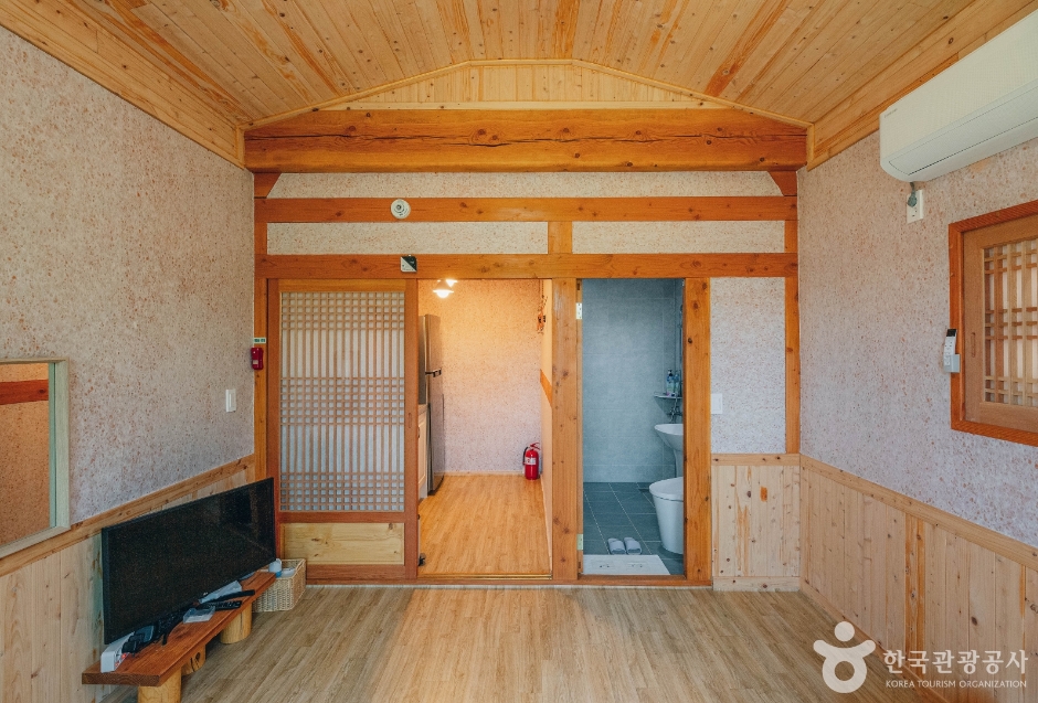 별바라기집은 월출산 국립공원 남쪽, 전라남남 강진군 달빛한옥마을에 자리한 한옥 민박이다. 향긋한 녹차 향과 숙소 입구의 빨간 우체통과 푸른 잔디마당이 한껏 반겨준다. 객실은 샛별방과 은하수방 총 2개로, 모두 한실이고 개별 화장실이 딸려 있다. 방과 방을 잇는 거실은 이곳의 매력 포인트로, 기다란 테이블을 중심으로 한편에 벽난로를 두어 일행이 둘러앉아 두런두런 이야기를 나누기에 좋다. 무료 조식을 제공한다.