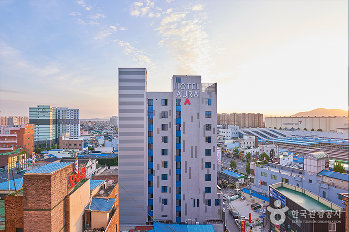 광주 아우라호텔은 KTX송정역 바로 맞은편에 위치한 비즈니스호텔이다.