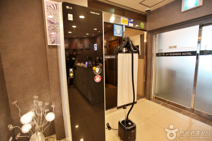 AT비지니스호텔은 경남 창원시청에서 도보 10분 거리에 있는 비즈니스호텔이다. 공용 컴퓨터와 프린터를 무료로 쓸 수 있는 비즈니스존, 공용 스타일러, 장기 출장객을 위한 세탁실을 갖춰 출장자의 편의성을 높였다. 객실은 총 26개로 다양한 타입이 구비되어 있고, 깔끔한 디자인이 돋보인다. 넷플릭스와 유튜브를 무료로 보며 긴장을 풀고 달콤한 휴식을 취할 수 있다.