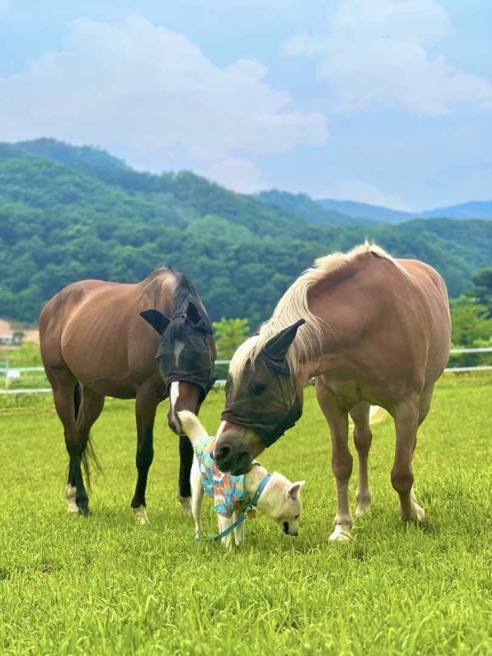숙소 전체에 2m의 높은 울타리가 설치되어 있어 반려동물과 함께 잔디밭에서 안전하게 뛰어놀 수 있다. 반려견의 몸무게나 견종을 미리 사전에 고지하면 편하게 사용할 수 있는 반려견 식기를 제공해 준다. 예약 인원이 아닌 방문객의 당일 방문은 불가함으로 사전 예약은 필수이다.