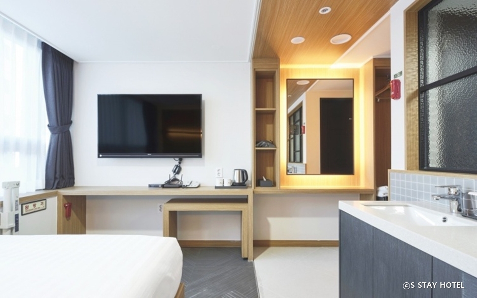 S STAY HOTEL은 수원 최적의 입지에 있어 은행, 병원, 문화, 쇼핑, 비즈니스, 교통 등 모든 조건이 최적화되어 있다. 건물 지하 1층에서 지하 3층까지 주차장이 있지만 협소한 편이다. 건물 1층에 24시 편의점이 있으며 프런트는 2층에 있다. 3층부터 5층까지 객실이고 6층부터 15층까지는 장기 투숙 고객을 위한 레지던스 룸으로 이루어져 있다. 요청 시 모닝콜이 가능하다. 객실마다 스타일러스가 설치되어 있다. 반려동물은 동반할 수 없다. 스카이라운지 레스토랑에서는 매일 신선한 재료로 만든 조식 부페를 유료로 이용할 수 있다. 경부선 수원역 근처에 있어 이동이 편하다.