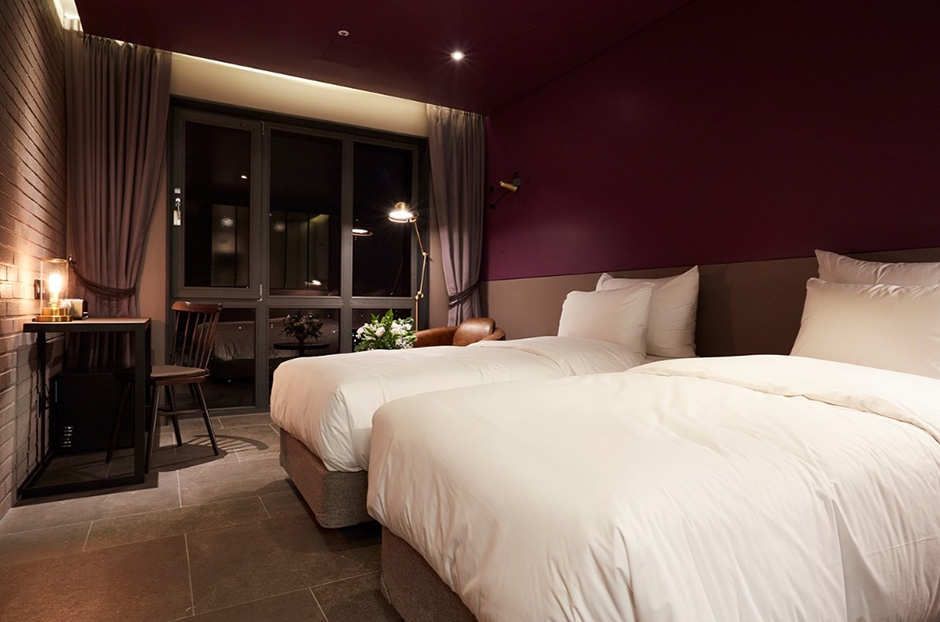나인 브릭 호텔은 지루한 일상에서 벗어나 각기 다른 테마를 가진 객실에서 특별한 추억을 경험할 수 있는 곳이다. 객실은 슈페리어 더블, 슈페리어 트윈, 디럭스 더블, 프리미엄 디럭스 더블, 주니어 펜트하우스, 클래식 펜트하우스로 구성되어 있다. 모든 객실에는 에어컨과 냉장고가 완비되어 있다. 또한, 목욕 가운, 헤어드라이기, 슬리퍼 등이 구비된 욕실이 있다. 호텔 내부 레스토랑에서는 조식, 점심, 저녁 식사를 이용할 수 있기 때문에 객실에서 멀리 나가지 않고도 식사를 즐길 수 있다.