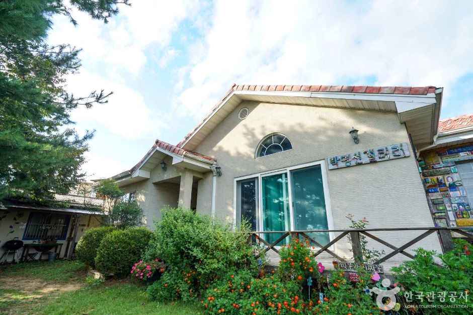 한적한 시골 마당이 있는 박명선 갤러리는 펜션으로도 운영되는데, 농약과 제초제를 사용하지 않고 가꾼 꽃들을 즐기며 차를 즐기기 좋다. 마당 한쪽에 홈 캠핑장이 있어 바비큐와 밤이면 캠핑 불멍도 가능하다. 이곳의 펜션은 독채를 오롯이 1팀이 이용하는 독립된 공간이다. 취사가 가능한 취사도구와 와인잔, 세면도구도 준비되어 있어 편안하게 낭만적인 하룻밤을 보낼 수 있다. 박명선갤러리에서는 방문객을 대상으로 미술 체험을 제공하기도 한다.