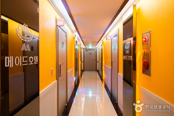전라북도 남원에 위치한 메이드호텔은 춘향테마파크와 광한루원이 도보 10분 거리에 있어 주요 관광지로의 접근성이 뛰어나다. 아름다운 야경과 편안한 휴식을 위해 오는 여행객과 주위에 많이 있는 풍력발전 시설과 관련된 비즈니스 고객이 자주 찾는다. 이 때문에 프린터와 팩스 등을 구비하여 업무처리가 가능하도록 했다. 간단한 식사를 위해 프론트데스트 옆에 전자레인지와 무료 원두커피, 토스트 등을 제공한다.