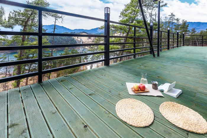 지리산호수리조트는 글램핑 스타일의 숙소로 경사진 언덕에 계단식으로 객실을 조성해 구만제 호수와 지리산의 풍경을 시원하게 감상할 수 있다. 리조트 입구에 호수를 가로지르는 보행 전용 다리가 있어 호수를 감상하며 가볍게 산책하기 좋다. 다리 건너편에는 자연방목 목장이 있어 치즈 만들기 체험이 가능하다. 객실 앞 야외테이블이나 야외 바비큐장에서 바비큐를 즐기며 글램핑의 멋을 느낄 수 있다. 반려동물 동반이 가능하다.