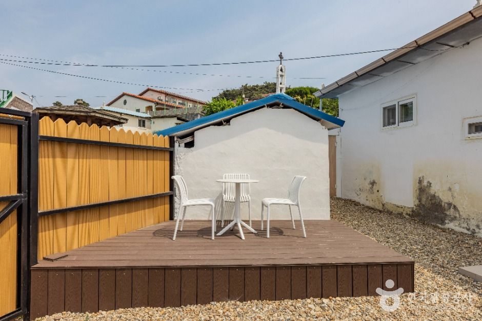 파라다이스 스파 도고에서 차로 5분 거리에 있다. 독채로 되어 있어며 숙박은 최대 6명까지 가능하다. 숙소 앞 마을회관 주차장에 무료로 사용이 가능하다. 또 방마다 책상, 의자가 있어서 독서나 업무가 가능하다. 호스트가 직접 제작하여 마을 산책로와 주변 관광지, 맛집 정보가 담긴 ‘마을안내지도’를 제공하여 따라서 관광도 가능하다. 실외 바비큐 및 실내 구이류 조리는 불가능하다. 체크인할 경우 셀프로 가능하다.