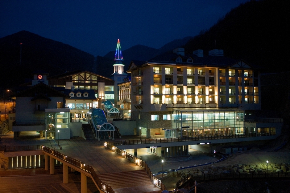 이국적 낭만이 가득한 마운틴콘도는 복층 구조의 넓고 여유로운 공간, 고급 대리석과 원목 마루로 마감한 격조 높은 인테리어가 차원이 다른 편안함을 주며 가족과 함께라면 더욱 즐거운 곳이다. 하늘샘 노천(SPA), 스키스쿨 등 최고의 부대시설을 갖춘 마운틴콘도는 지상 10층, 지하 1층의 규모로 펜트하우스 개념을 가진 최고급 콘도이다.