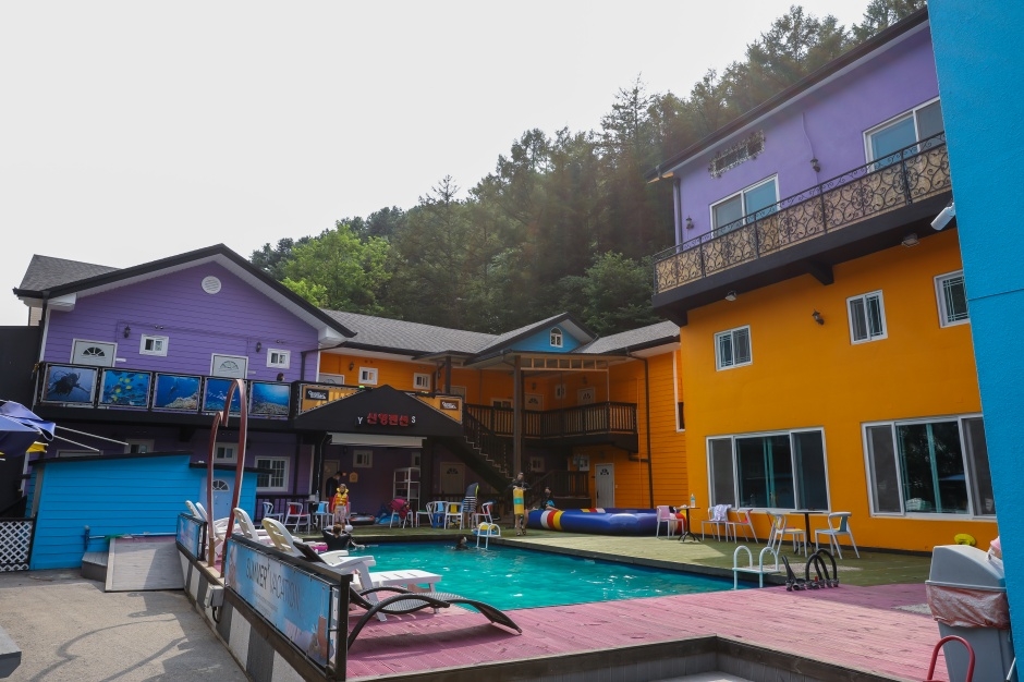 신영펜션은 강원도 홍천군 서면에 있는 ‘대명 비발디파크’ 내에 있어 봄부터 겨울까지 사계절 동안 비발디파크의 시설을 편리하게 이용할 수 있다. 콘도 스타일의 고급 펜션으로 100여 명을 한꺼번에 수용할 수 있다. 골프, 래프팅, 족구, 테니스, 서아비벌 게임, 오프로드 Car, 볼링 등을 즐길 수 있으며, 특히 겨울에는 스키, 보드, 눈썰매 등을 즐길 수 있는 이름 그대로의 사계절 휴식 공간이다. 근처에는 팔봉산, 홍천강, 소리산 계곡 등이 있으며, 참숯을 구워낸 가마에서 찜질을 할 수 있다.