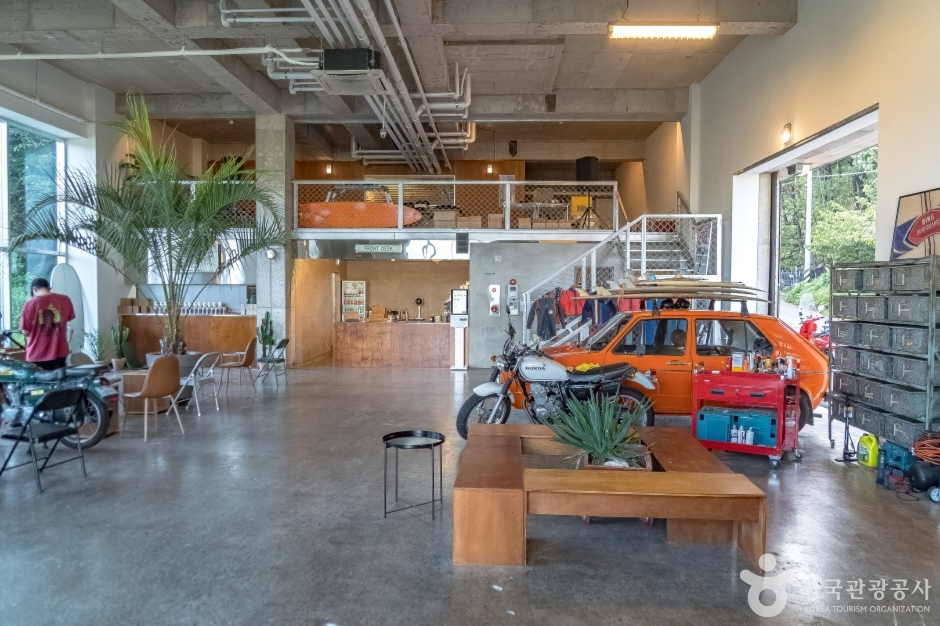 강원도 양양 기사문해변에 위치한 루프탑 수영장을 갖춘 아메리칸 서핑 감성을 그대로 느낄 수 있는 숙소이다. 회색 시멘트 외벽의 3층 건물에 1층은 브런치로 유명한 카페, 2, 3층은 호텔로 운영된다. 4층에 루프탑 수영장과 바가 있다. 미국의 집집마다 있는 개인 차고지 컨셉의 호텔이며, 클래식 자동차도 있어서 인스타그램 핫플로 알려져 있다. 온수 풀은 미국 특허를 받은 수영장 전용 히트펌프를 사용하여 시즌에 맞게 수영장 물을 따뜻하게 또는 차갑게 할 수 있는 시스템과 깨끗한 수질 관리를 위해 친환경 해수 풀 시스템을 갖추고 있다. 이 호텔은 노키즈존이고, 2인실에 인원추가가 불가하며 주방 시설이 없다. 룸 타입은 2가지가 있어 선택할 수 있다. 11개 객실이 모두 같은 구조이며, A타입은 조금 진중한 색의 우드를 사용한 룸이고, B타입은 밝은 분위기의 우드를 사용한 룸이다. 주변에 낙산사, 하조대, 남애항, 오색탄산온천 등의 관광지가 있다.