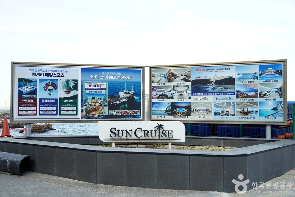 썬크루즈는 전국 제일의 해돋이 관광지인 정동진 해안절벽에 위치한 테마형 육상 크루즈 리조트이다. 호화 유람선을 테마로 한 아주 특별한 사계절 휴양지로 2002년 오픈하였으며 조선소에서 특별 주문 제작한 길이 165m 높이 45m의 3만 톤 급 실제 유람선이다. 초호화 유람선을 모티브로 하여 독특한 설계를 자랑하는 썬크루즈는 일출과 동해바다를 감상할 수 있는 콘도형 객실과 호텔형 객실이 있으며, 양식당, 한식당, 회전식 스카이라운지, 나이트클럽, 노래방, 해수풀장 등 각종 부대시설을 갖추고 있다. 또 최첨단 시설을 갖춘 연회장은 각종 세미나, 워크샵 등을 하기에 최적의 장소를 제공한다. 새로운 장르의 크루즈형 테마 리조트인 썬크루즈에서 야자수 사이로 펼쳐진 이국적인 바다의 정취, 또 일출을 바라보며 느끼는 감동은 고객의 삶 속에 새로운 활력소와 함께 아름답고 소중한 추억으로 영원히 간직될 것이다.