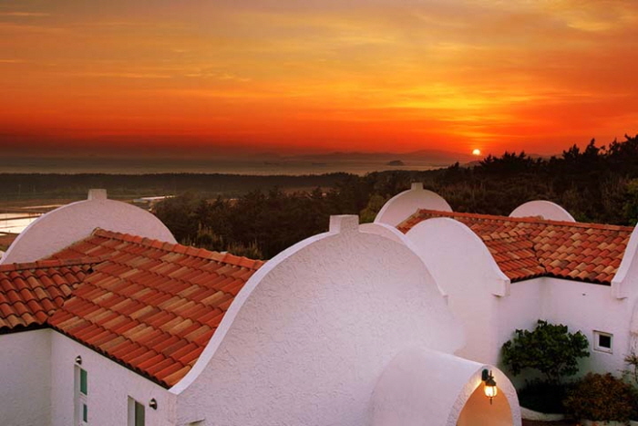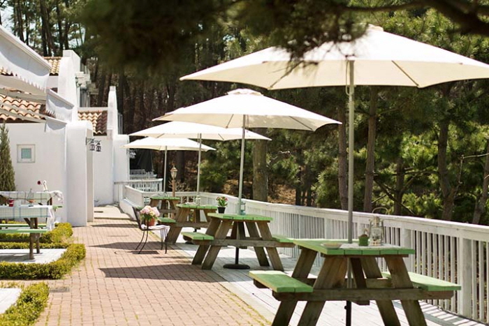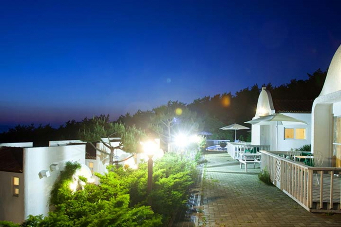 청포대 해변을 바라보는 언덕에 자리한 그람피하우스는 마치 동화 세계처럼 예쁘다. 하얀 벽에 주황색 지붕을 얹은 지중해풍 독채 건물이 14동이나 모여있으니 동화 마을로 여행 온 기분이다. 그람피는 백설공주와 일곱난쟁이에 나오는 난쟁이 이름이다. 각 건물에 백설공주나 난쟁이 이름을 붙여 놓았다. 모든 객실이 독채로 되어 있고 내부 역시 예쁘고 깔끔하게 꾸몄다. 복층 구조와 아기자기한 장식, 청결한 화장실, 모던한 주방까지 갖춰 여행자들의 만족도가 높다. 그람피하우스와 주변 숲으로 이어진 산책로는 가볍게 걷기 좋고, 잘 가꾼 잔디정원에서 바라보는 바다 풍경은 무척 아름답다. 예약 시 신청하면 유아용 놀이 텐트 대여, 갯벌 체험 도구 대여, 바다낚시도 가능하다. ATV·서바이벌 할인, 안면도쥬라기공원 입장권 20% 할인권, 카페에서 주인장이 직접 드립커피를 준비해 준다.