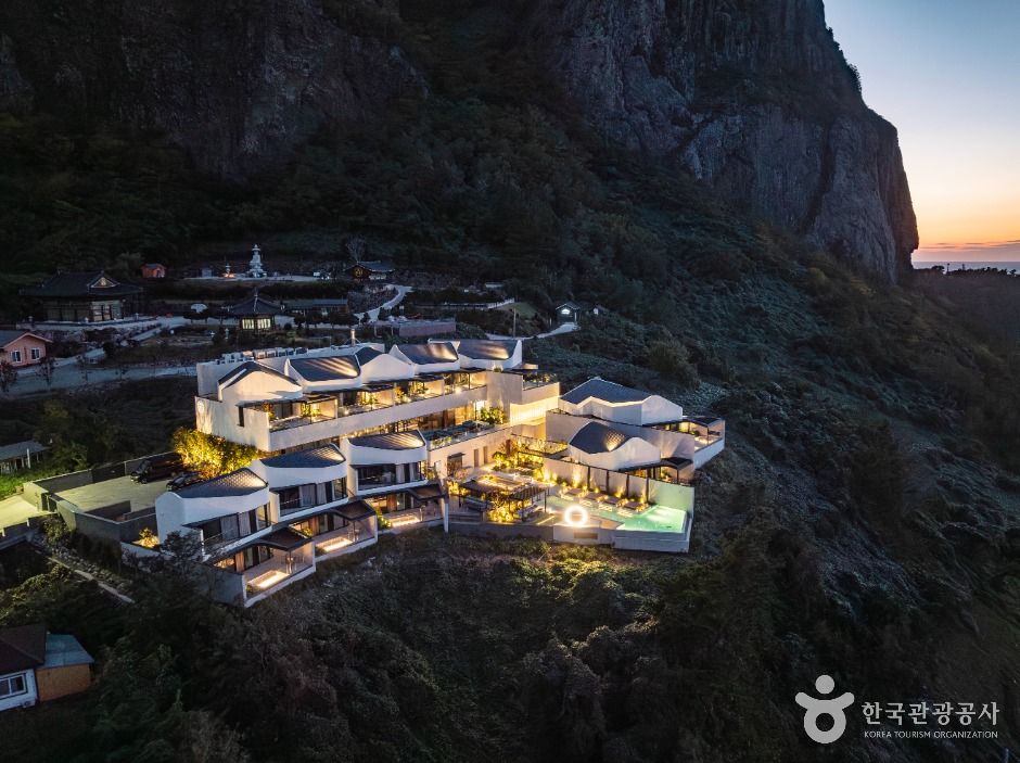 코스모스 울릉도는 울릉도의 절경 속에 자리한 하이엔드 리조트이다. 자연과 건축, 웰니스가 조화를 이루며, 단순한 숙소를 넘어선 경험의 공간으로 설계되었다. 김찬중 건축가는 이를 ‘기를 담는 그릇’으로 구상하였으며, 음양오행의 기운을 느낄 수 있도록 구성하였다. 송곳산과 바다에서 영감을 받은 건축과 고객 경험은 행운과 번영의 여정으로 안내한다. 프라이빗 독채형 빌라 코스모스, 올인클루시브 서비스를 제공하는 하이엔드 풀빌라형 빌라 쏘메, 호텔형 리조트 빌라 떼레로 구성된다.