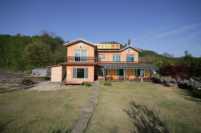황토는 항생작용과 항균작용에 뛰어나기 때문에 세균과 곰팡이를 없애주며, 우리 신체의 독소를 없애주는 해독작용, 혈액순환과 신진대사 촉진, 피로해소 등 다양한 효능이 있다. 화악산황토펜션은 이러한 효능과 건강을 생각하여 모두 황토로 지어진 웰빙 펜션이다. 모두 온돌방으로 구성되어 있으며, 겨울에는 따뜻함을, 여름에는 시원함을 느낄 수 있어 편하게 휴식을 취하기에 더없이 좋은 공간이다. 화악산황토펜션은 사창리 시내와 인접하여 앞으로는 물이 흐르고, 뒤로는 두류산 줄기가 푸르게 펼쳐져 있다. 펜션 마당에 넓은 잔디밭이 있어서 아이들이 뛰어놀기 좋고, 한적한 산책로와 창안산 산림욕이 바로 뒤에 있어서 경치 구경을 하며 계곡을 따라 산책 및 산림욕 하기에 좋다. 또한 사창리 시내도 바로 앞에 위치해 있어 도보로 다니기에 좋고, 여름에는 토마토축제, 가을에는 이기자축제, 겨울에는 산천어축제가 열리기 때문에 축제에 참여해 보는 것도 즐거운 추억거리로 남을 수 있다.