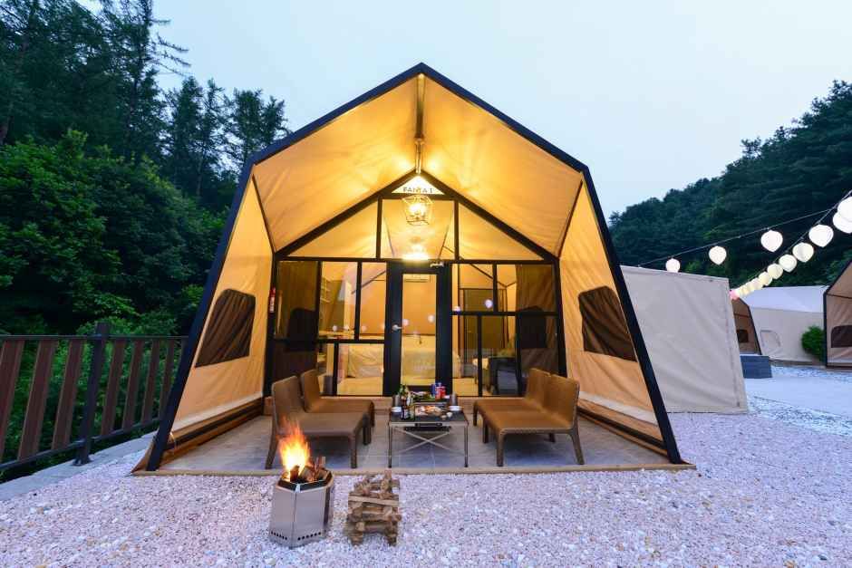 가평군에 위치한 환타지콜라보리조트는 피톤치드 가득한 잣나무 숲으로 둘러싸여 있으며, 밤하늘의 별들을 바라볼 수 있는 곳이다. 가평군의 주요 관광지 인근 위치해 있으며, 풀빌라&글램핑 테마의 객실로 구성되어있다. 객실타입은 독채풀빌라, 글램핑, 복층형 원룸 3 타입으로 운영하기 때문에 인원, 온수풀 유무, 수영장 접근성 등 미리 확인이 필요하다. 객실 타입과 상관없이 전 객실 호텔식 침구로 편안한 잠자리를 제공한다. 독채 풀빌라 타입은 말 그대로 전원주택 별장 같은 운치가 있으며, 글램핑은 에어컨부터 월풀 스파까지 완비된 캠핑 감성을 즐길 수 있다. 콜라보동(복층형 원룸)은 4월 중순부터 9월까지 야외 온수 수영장을 운영하여 남녀노소 누구나 휴식과 함께 즐거운 물놀이를 할 수 있다.