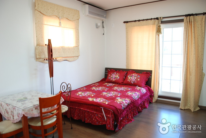 강원도 홍천 노일강변에 위치한 강변의 수채화 펜션은 테라스에서 바라보는 안개 낀 강변과 해 질 무렵 붉은 노을이 아름다운 펜션이다. 객실에서 창을 열면 노일강의 금빛 물결이 방안으로 들어온다. 뒤쪽으로는 금학산 자락이 펜션을 병풍처럼 감싸고 있어 멀리서 바라보면 아늑한 느낌을 준다. 객실은 모두 5개로 모두 꽃 이름으로 지었다. 대부분의 손님이 연인들이고 여름에는 가족여행으로도 많이 찾는 펜션이다.