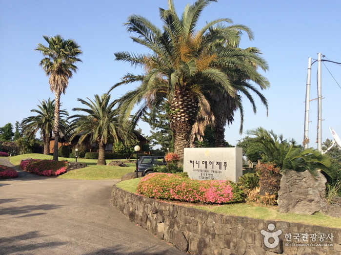 제주 대포동 해안가에 위치한 자연친화적 통나무집으로 설계된 써니데이제주 펜션은 중문관광단지를 비롯한 다양한 관광지와 근접해 있고 제주의 정취를 느낄 수 있는 곳이다. 모든 객실의 감귤색의 불빛은 따뜻하고 온화한 느낌을 나게 해며 안정감 있게 편안한 심리상태로 쉴 수 있도록 설치되었다. 외부의 모습은 독특한 개인 별장의 느낌을 나게 하며 별장 주변에 심어져 있는 큰 야자수들이 이국적인 느낌을 더해준다.