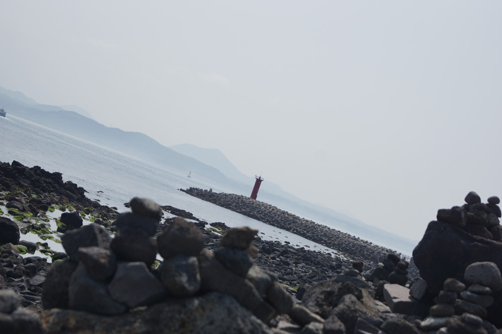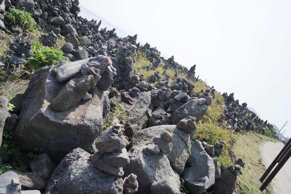우도에 위치한 소원기원 돌탑길
