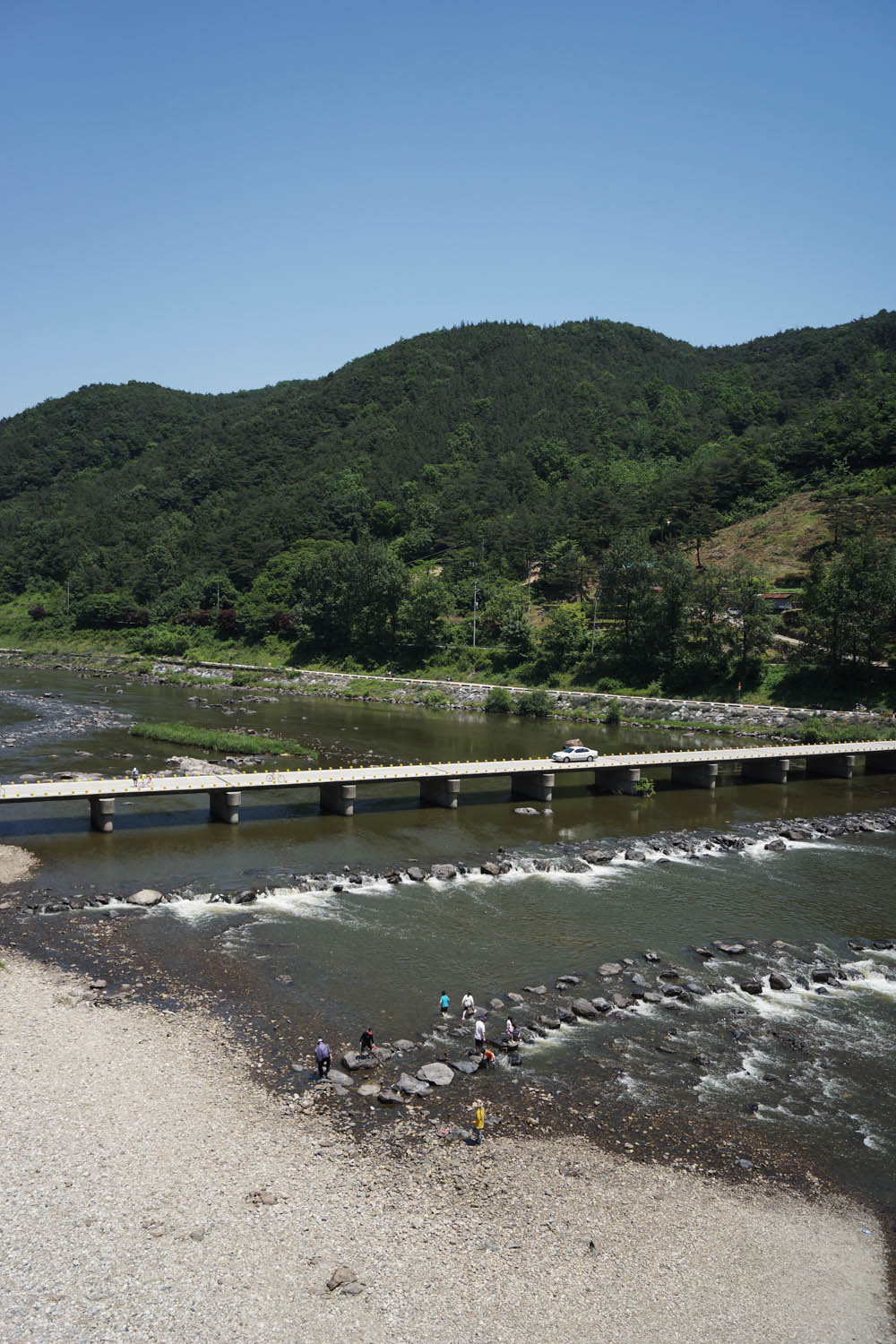 아래로는 하천이 흐르는데요 하천에서 물놀이를 즐기시는 분들이 꽤나 많이 있었습니다.