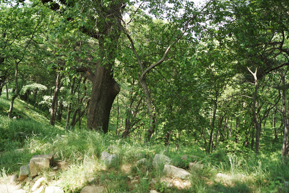반달 모양으로 구릉을 깎아 군데군데 토석을 섞어가며