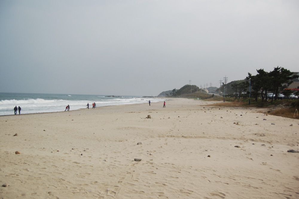 정암해수욕장은 7번국도변에 자리한 해수욕장으로 해변을 따라 산책로와 자전거 전용도로가 조성되어 있다.