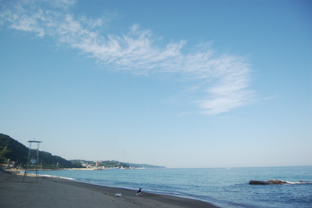 백사장 길이는 1km 수심은 1.5m로 해안선을 따라 백사장이 길게이어져 있구요,